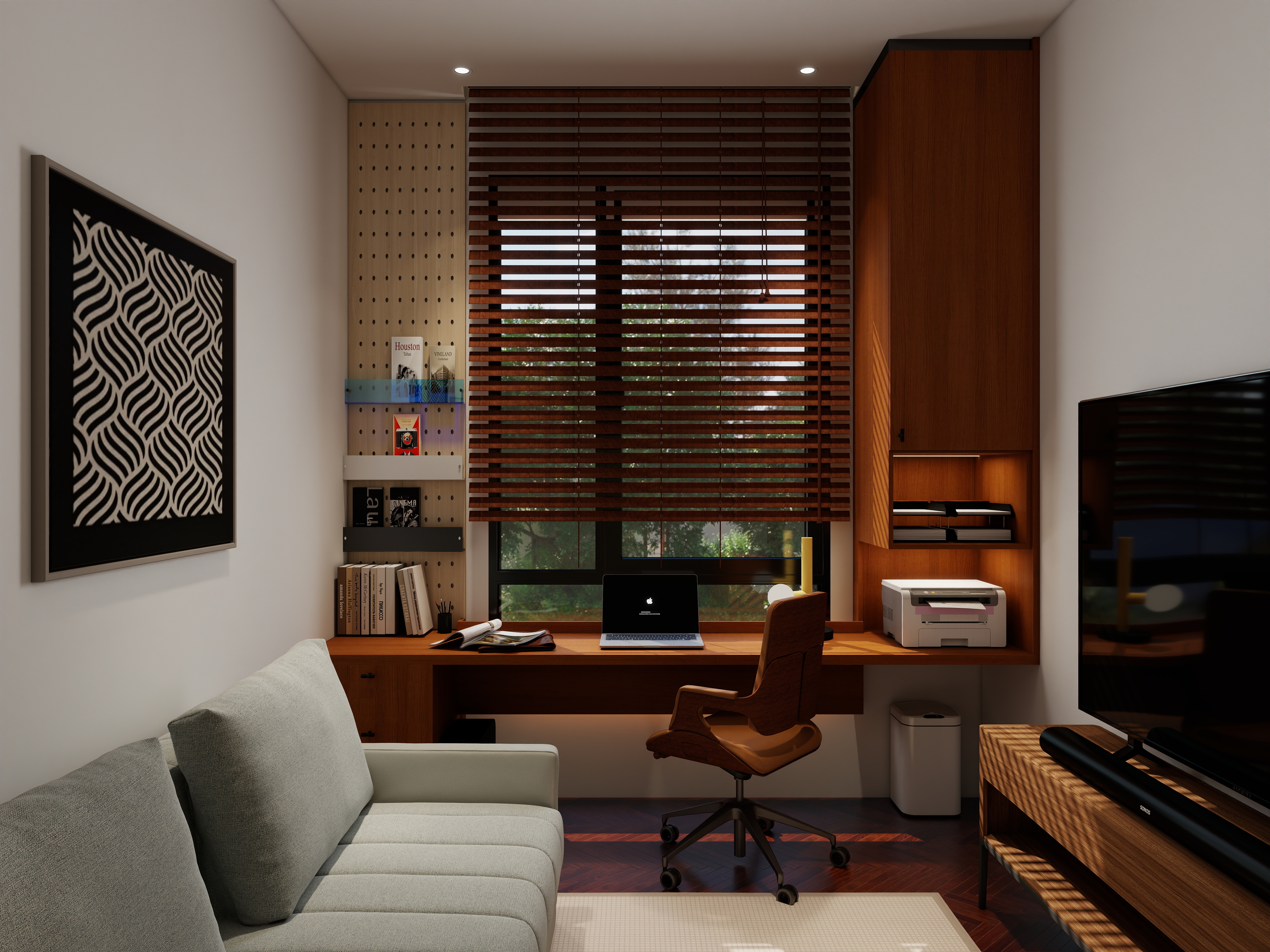 Mid-Century Modern design is not just about aesthetics; it’s about smart functionality. Built-in cabinetry, multipurpose furniture, and open layouts are all hallmarks of this timeless style. In the home office, practicality meets design sophistication — storage solutions are seamlessly integrated, and lighting is tailored to create the right mood for both focus and relaxation.
