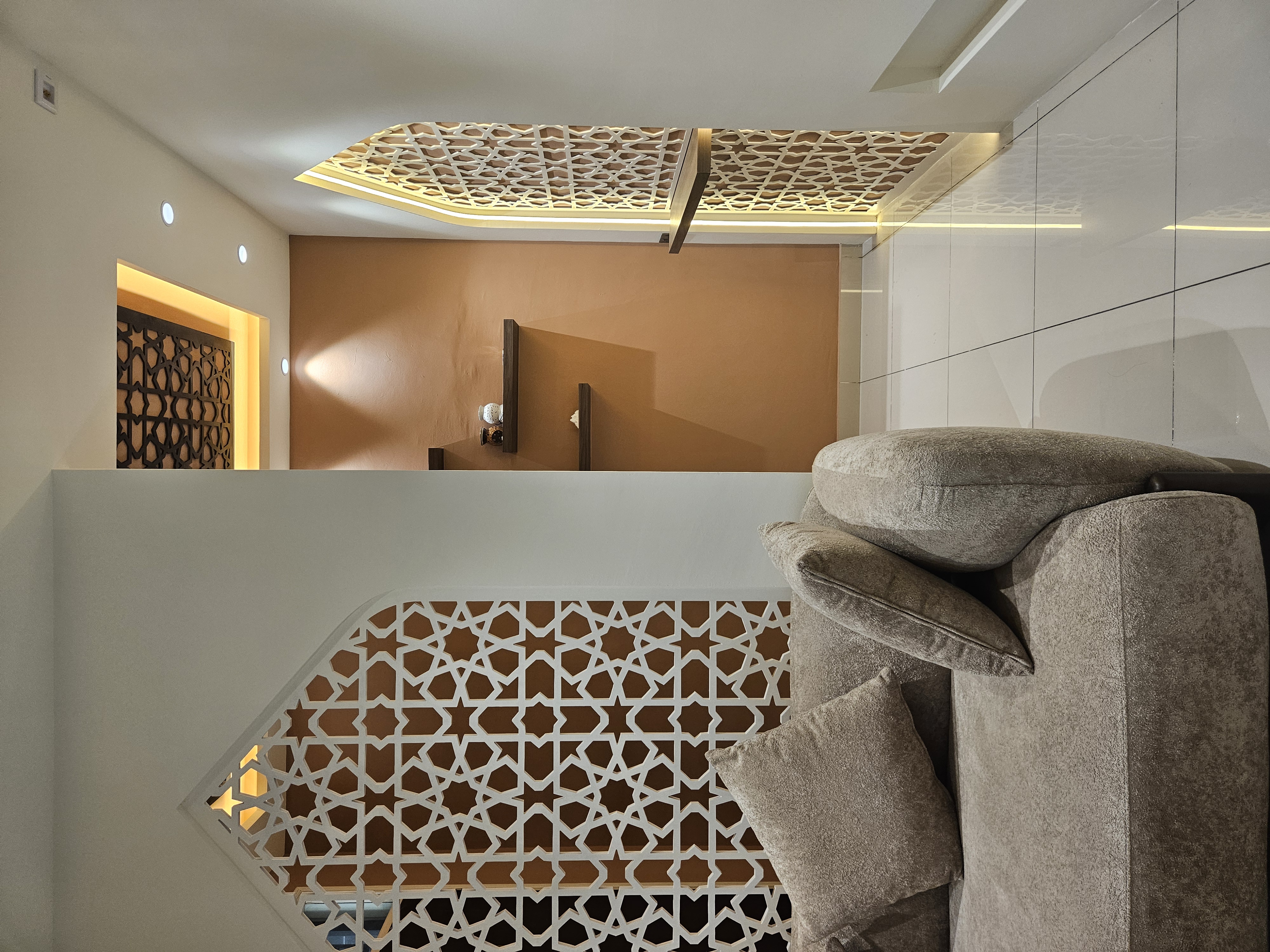 Throughout the home, geometry becomes a silent language. Every line, every star-shaped pattern, every intersection carries meaning. These forms, rooted in centuries of Islamic art, are translated into a modern context — precise, minimal, and refined.